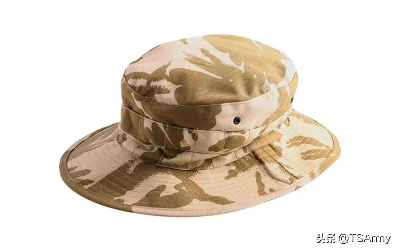 在英军当中除了有目前最常见MTP迷彩奔尼帽外,还有早期配发的DPM沙漠迷彩奔尼帽,虽然装备的时间较早,但目前仍有少部分在英军中服役。