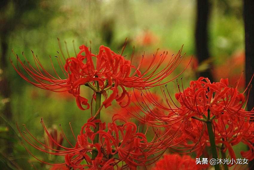 因为石蒜往往盛开在墓地附近,色泽鲜红似血,花期又近秋分(日本的祭礼节日),加之石蒜叶落花开,花落叶发,永不相见,此花多用于别墅花园种植,一般成百上千只一起种,秋季会大批开放,景观效果极佳。此外,由于石蒜的根茎与水仙十分相似,有些黑心花贩会用它冒充水仙来卖,所以买花时要仔细甄别哦~。