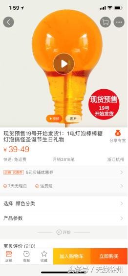圣诞节就要到了,一些搞笑又搞怪的小玩具陆续上市。近日,一张男子被灯泡形状的棒棒糖卡住的照片走红网络。无线徐州全媒体记者调查后发现,这款1:1大小的灯泡糖在淘宝上卖得十分火热,有的店铺月销高达2818笔。医生表示,如果灯泡糖卡在嘴里,可能导致人窒息。