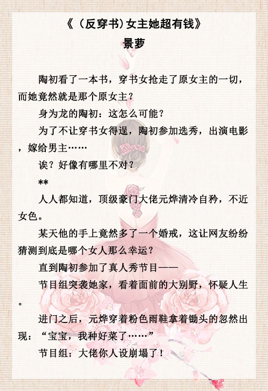 「推文」五本反穿小说推荐,被穿女主绝地反击,女配跪求放过