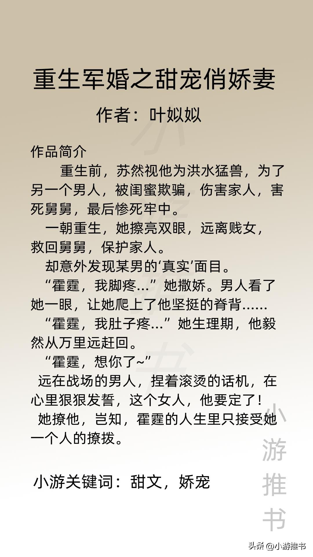 06.《重生军婚之甜宠俏娇妻》 作者:叶姒姒