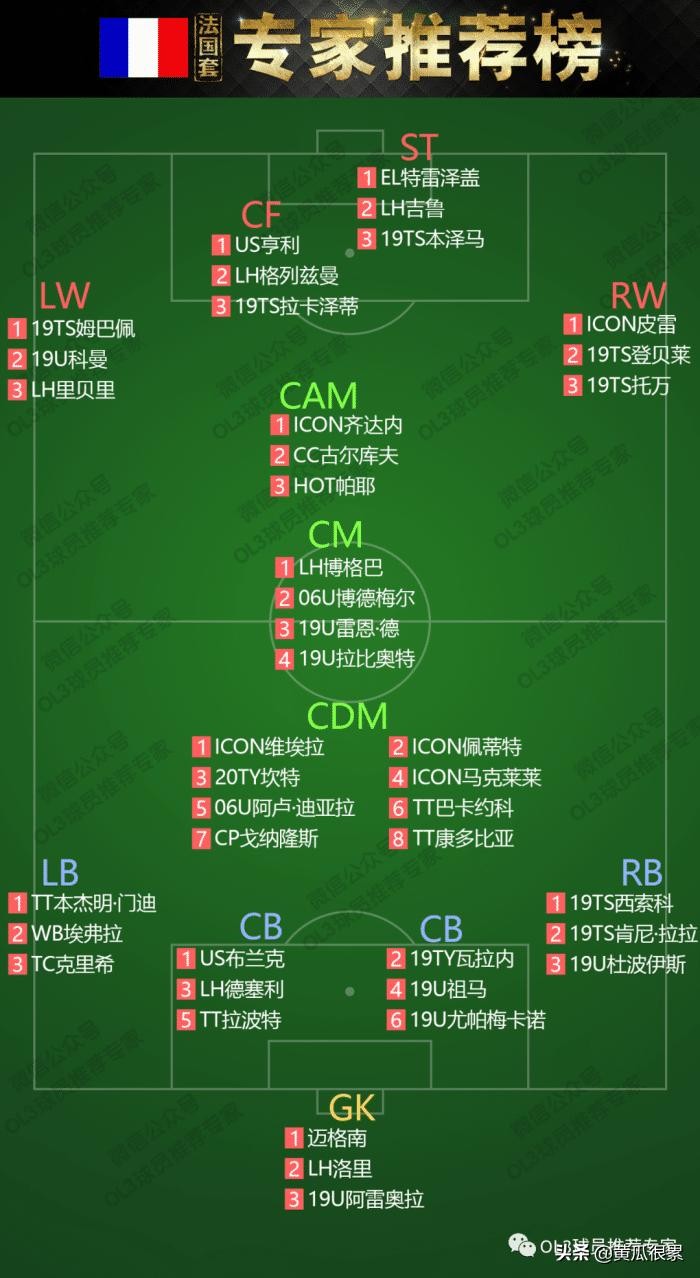 CM位置首推LH博格巴,当然很多赛季的博格巴都可以用。比如你的是19TY博格巴,那我建议你去打前腰位置,因为19ty的防守参与度只有1,而且数据各方面都比较偏向进攻,所以前腰更合适。如果你的是WB博格巴,那所有位置都能打,这个博格巴是最万金油的博格巴。还有TT博格巴也是推荐的。法国套CM位置人少了点,就是各种博格巴,当然你也可以用维埃拉打CM。法国套最强的CM就是维埃拉和博格巴了。剩下的06U博德梅尔10卡因为绝版你很难搞到,还有19U雷恩·德、19U拉比奥特明显档次不够,只能当替补。