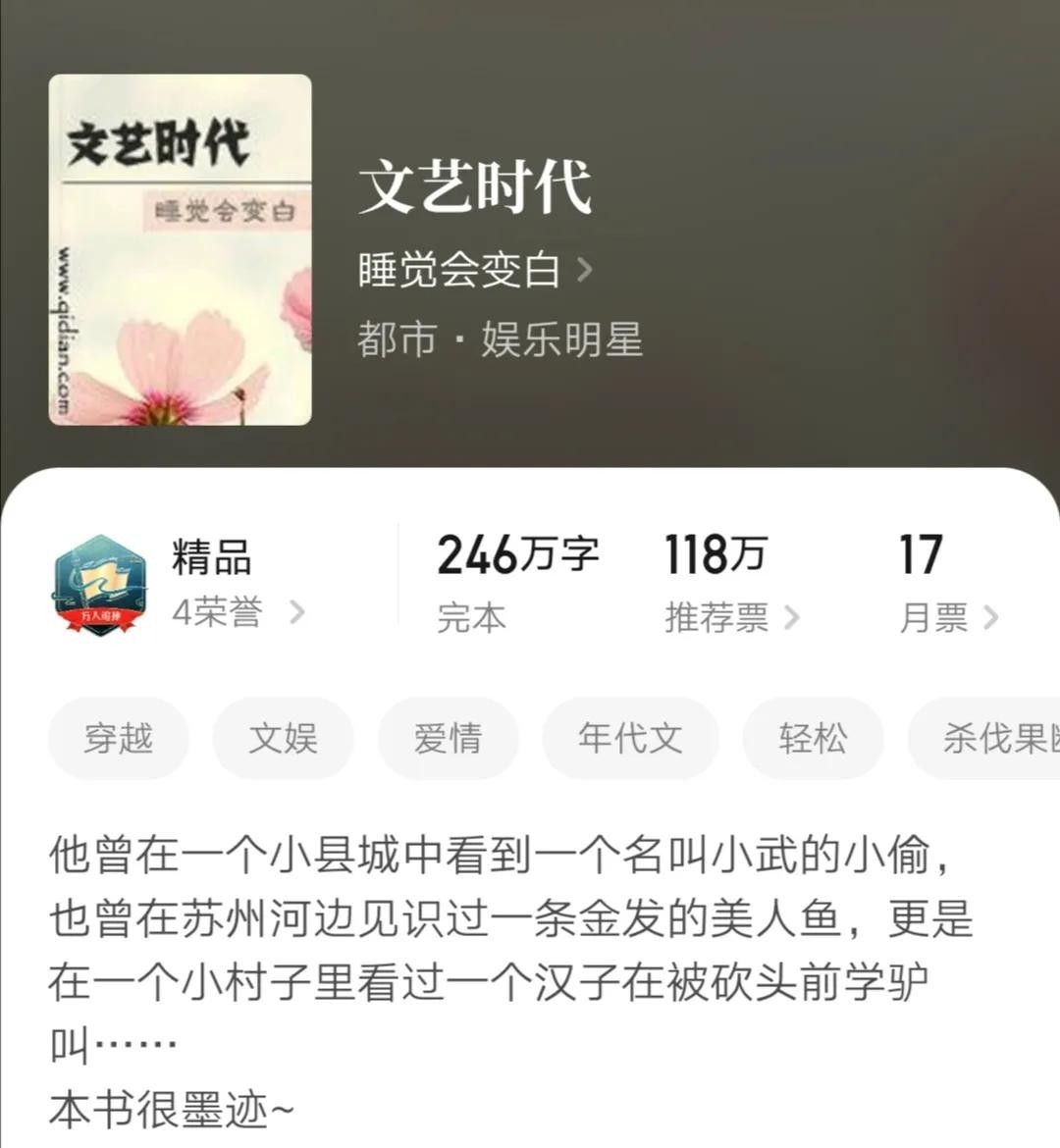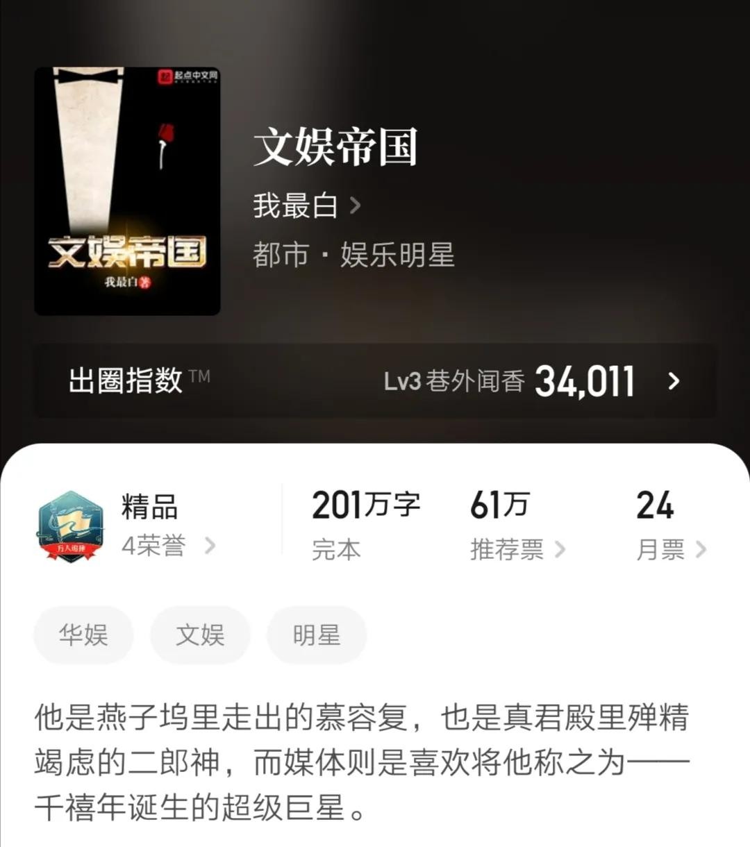 其实都市娱乐文,大体都是那些事,主要文笔好,能把故事写得吸引人,就行了,像我这种不关心影视娱乐圈的,纯属看个热闹,完全当做都市文在看。这一本文笔就很好,行文流畅,阅感不错。
