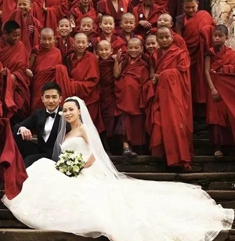 2008年7月21日,刘嘉玲在和师兄梁朝伟兜兜转转20多年,终于在2008年在不丹举行了世纪婚礼,成为了娱乐圈最为重量级的一对明星情侣。