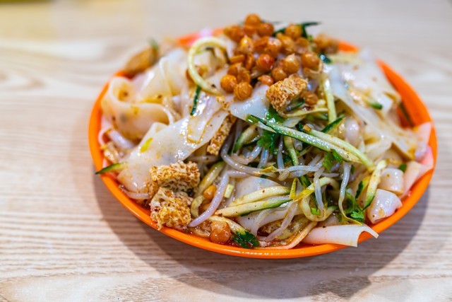 凉皮,一道令人垂涎欲滴的小吃,爽滑的口感,咸香四溢,是美食街和学校门口的常客。其原料简单,仅需面粉和水等家常食材,成本低廉。如今市场已有现成的凉皮供应,只需搭配一些调料和酱汁,便可轻松制作出美味的凉皮。