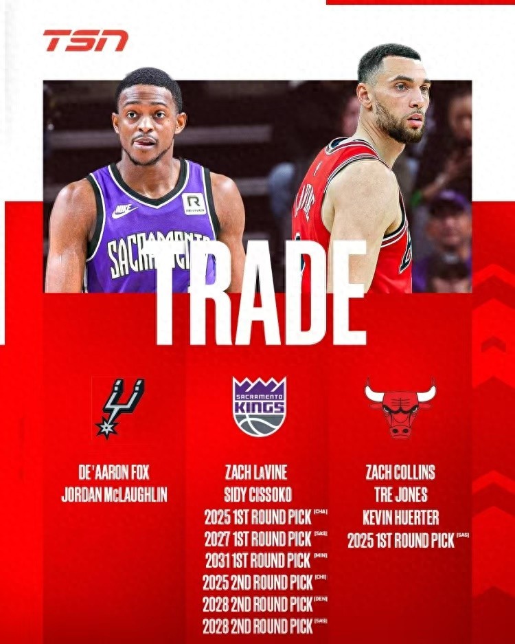 今天公牛、马刺和国王的三方交易正式官宣了,昨天名记Shams透露了这笔交易,现在三方正式官宣也承认了交易的准确性,这笔交易的具体细节是:公牛得到了扎克科林斯、特雷琼斯和赫尔特以及从马刺收回了自己25年的首轮签,公牛无意留下琼斯,此外为了完成交易,公牛还裁掉了杜阿尔特和克雷格,腾出阵容名额。