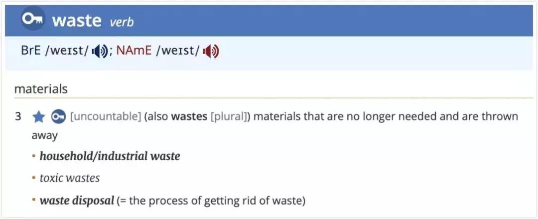 我们先来看看waste的英文词典解释: