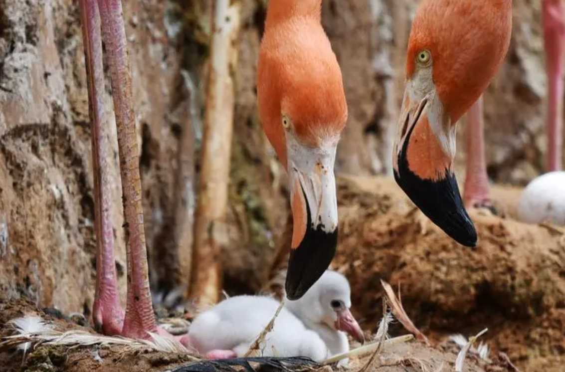 绝大多数的鸟纲动物都会选择自己哺育后代,火烈鸟也不例外,自雏鸟出壳之后,雌鸟和雄鸟就开始共同承担起喂养雏鸟的责任。但与其它鸟纲动物不同的是,火烈鸟在哺育后代时选择用“血”来喂养后代。