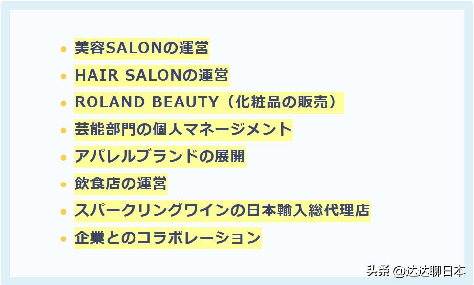 之后,26岁的罗兰开启创业的序幕。在业界大获成功的罗兰创办了自己的公司,现在已经是株式会社 RAOLAND GROUP HD的老板。其“商业帝国”主要有:美容沙龙、美发沙龙、化妆品销售、艺能界经纪、医美、餐饮店、香槟日本进口总代理、企业合作等。