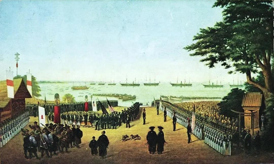 到了十八世纪上半期,资本主义萌芽产生,新的生产方式的出现从根本上动摇了幕府统治的基础,而且由于幕藩和武士的财政状况每况愈下,幕府的威信受到沉重打击,各地农村也因不满封建压迫常常发生暴乱。1853年,美国海军将领佩里率领舰队闯入江户湾,迫使日本开港通商,史称黑船事件,此后德川幕府被迫与西方列强签订了一系列不平等条约,日本人民的处境更加痛苦,人们开始认识到要真正富强,就要推翻幕府统治,于是倒幕运动开始了。