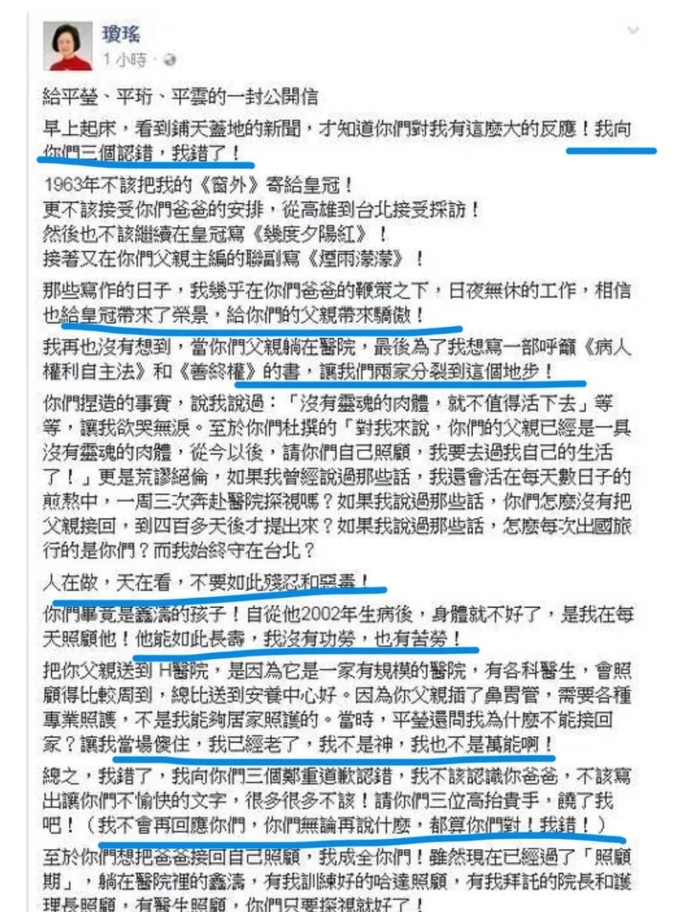 她的儿媳何秀琼,这位一直陪伴在琼瑶身边的得力助手,开始站出来为她出头。