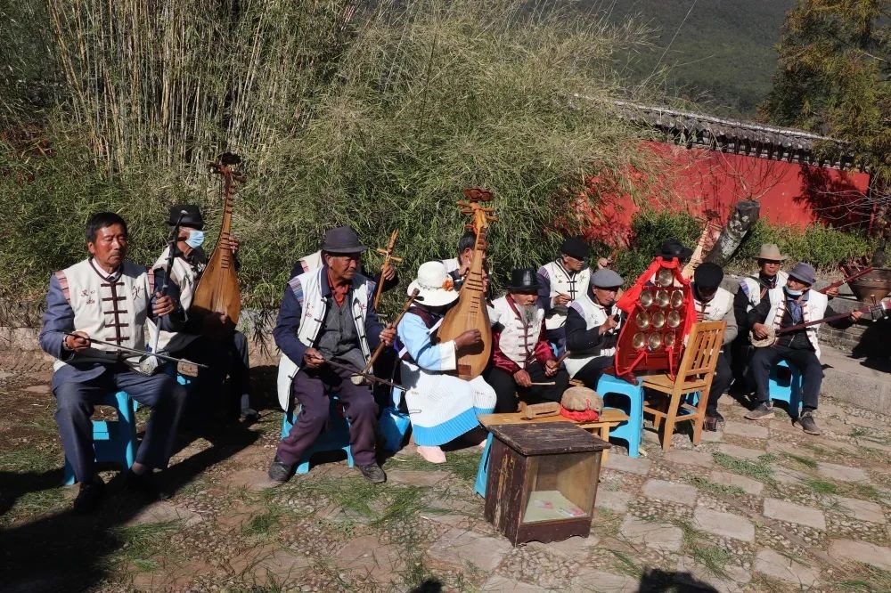 在3月10日当天,为统筹推进新冠肺炎疫情防控和经济社会发展,在确保疫情防控常态化工作的前提下,玉龙县白沙三多阁举行“三多”祭典仪式,在三多阁的十里香院内,古乐悠扬。玉龙县邀请了丽江纳西非遗传承人在这里进行本土民族传统歌舞表演。