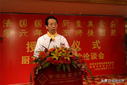 2006年4月20日,史正良在接受法国国际厨皇美食会授勋仪式时讲话。