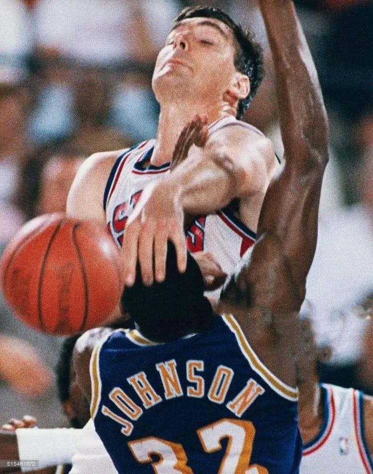 跟活塞队交手的时候有什么风险?甚至在一次和公牛的季后赛中,面对乔丹得分犹如砍瓜切菜一般连连得手,主教练查克-戴利放下狠话:“谁上去防乔丹?我让他见见血!”这就是当年的坏孩子军团,这就是铁血活塞,而兰比尔只是铁血活塞队的一员。就是在当年的高压防守下,每支球队的平均得分很少有过百的,球员之间相互肉搏扭在一块缠打在一起挂彩也是很正常的事情。