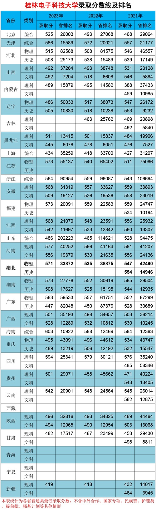 桂林电子科技大学近三年全国招生分数线及排名