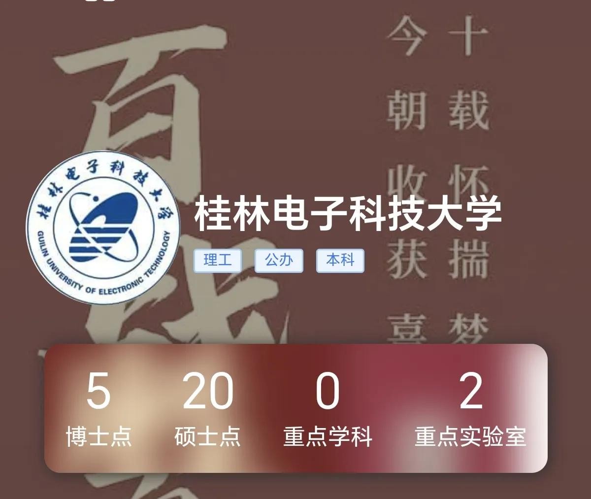 桂林电子科技大学,是一所以工为主,工、理、管、文、经、法、教育、艺术等多学科协调发展的普通本科院校,曾于先后隶属于第四机械工业部、电子工业部、机械电子工业部、中国电子工业总公司、信息产业部。桂电在电子科学与技术、信息与通信工程、计算机科学与技术等领域有着卓越的学科优势。在科研方面,桂电在电子材料与器件、通信技术、智能制造等领域有着突出的研究成果。