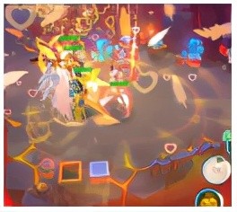 3、释放技能以自身放出大范围的法阵,自身免疫控制,为队友和自身持续回复生命值,并且给全体友方增加攻击力