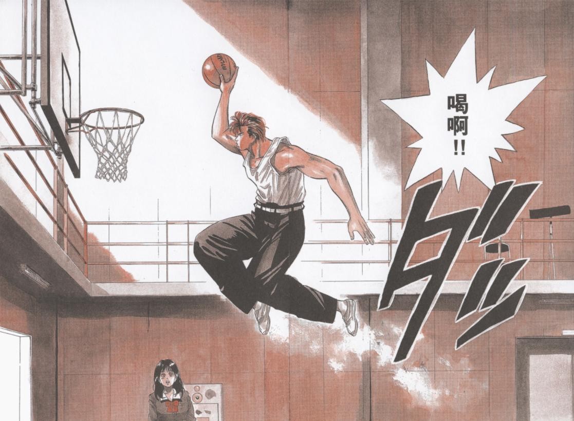 我始终觉得井上一开始对于樱木是“认真”的?从开始的设定,很难想象后续能和敢爱敢恨,热血青年的形象联系在一起,用现在时髦的话,不说一模一样,简直毫无关系。又或许是井上的艺术化表现,能够快速让读者有一种“代入感”?或许从开始也仅仅是传达着“每个曾经的热血男儿,默默找到共鸣,插科打诨的死党,初恋的甜涩、烈日下球场的追逐、打群架、独自练球、单挑、校级联赛、毕业散场”,写着写着,樱木就开始更加有血有肉了。