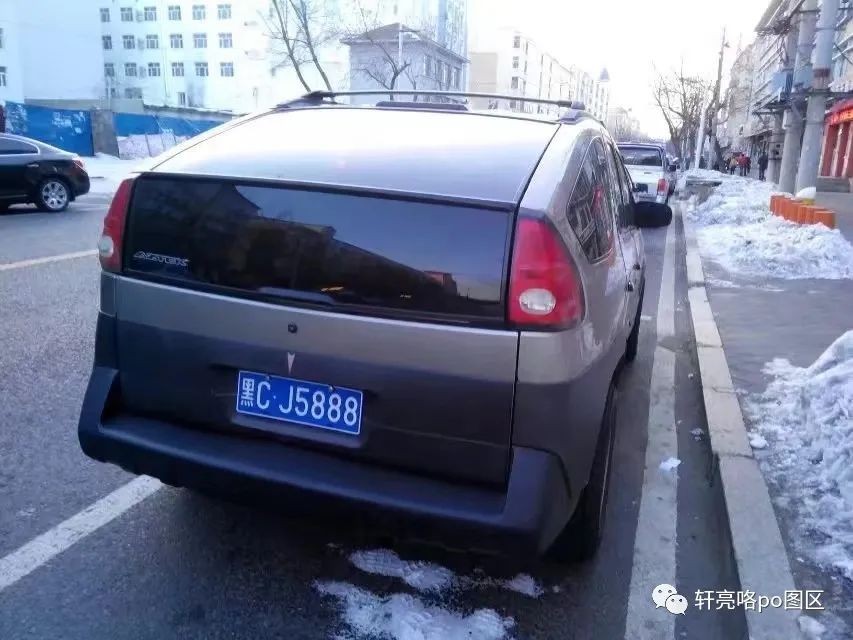 ↑ 由@放洋的猩猩 在2014年拍摄的一台Aztek前期版,车身覆盖金/黑双色,悬挂着黑龙江牡丹江市车牌。