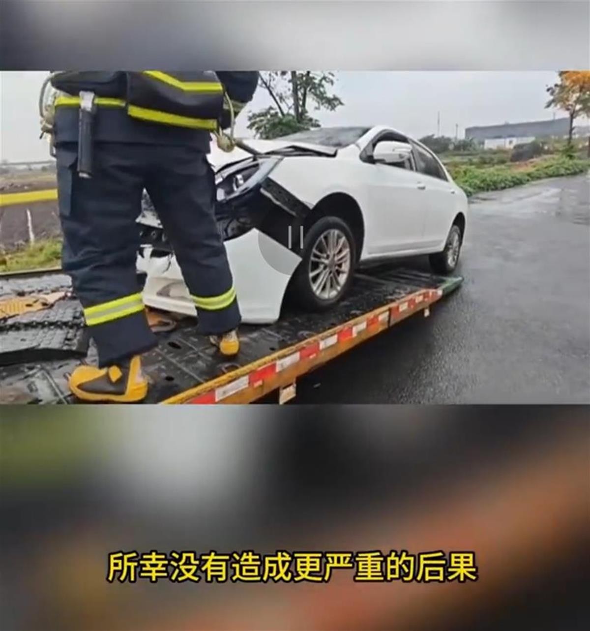 拖车上的新能源车当时在着火冒烟