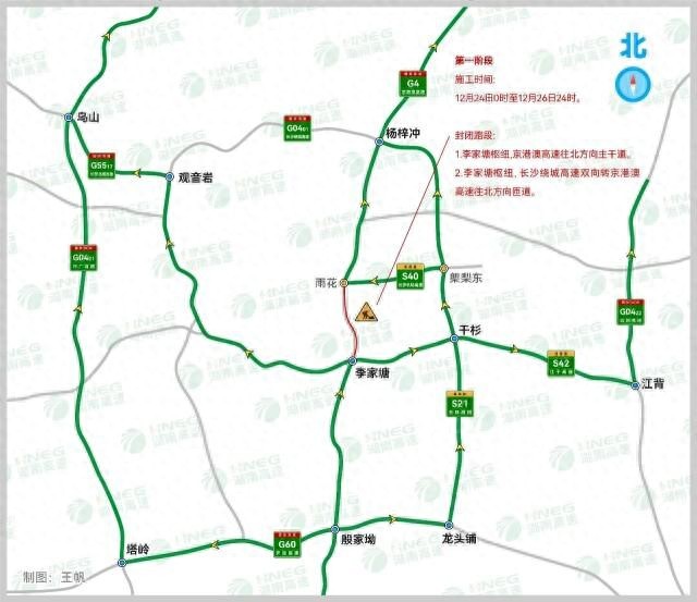 华声在线12月24日讯(全媒体记者 于淼)记者从湖南高速集团获悉,G4京港澳高速湖南长沙段1509公里至1484公里处,李家塘枢纽至杨梓冲枢纽双向路段,于12月24日至12月30日分阶段和时段开展施工。