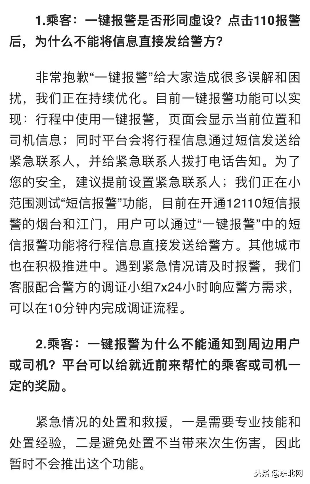 此前,滴滴曾回应过关于一键报警功能的质疑: