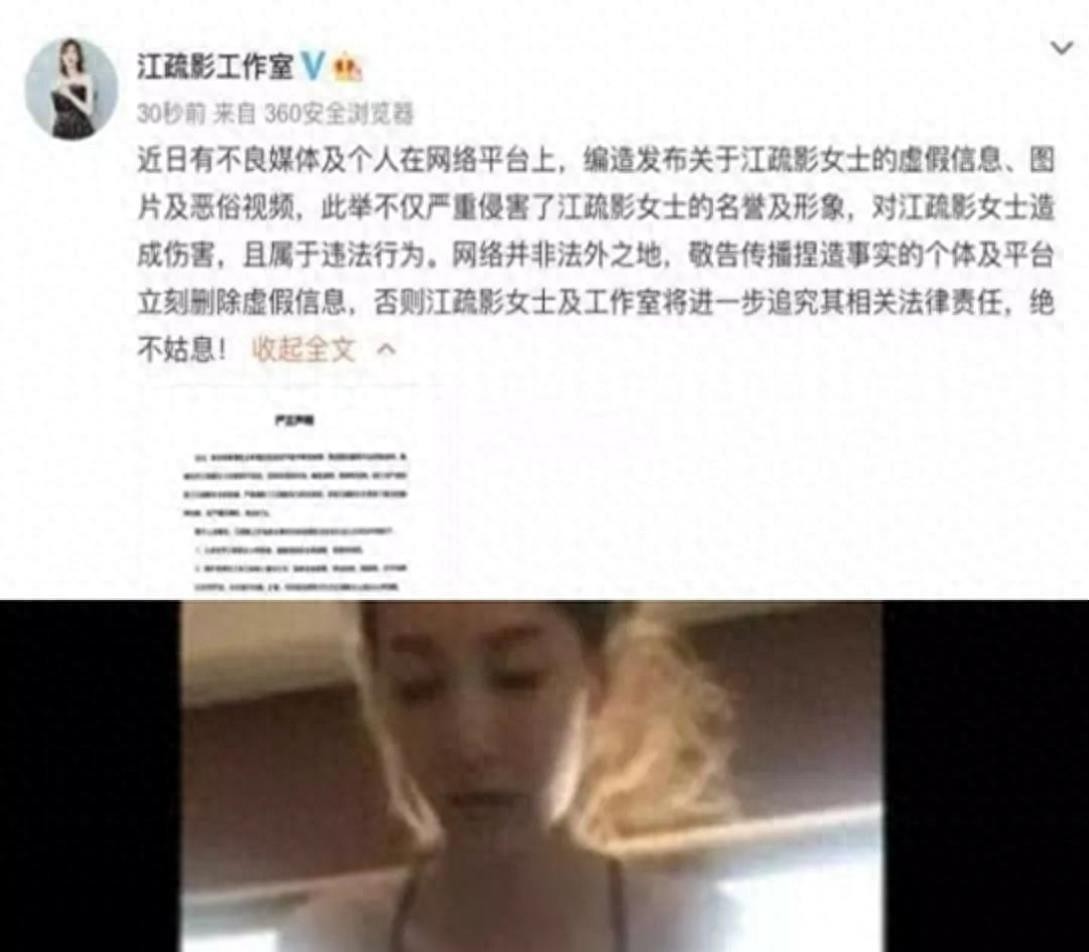 回顾:江疏影淫秽视频再次发酵,否认已无意义,网友:还真像