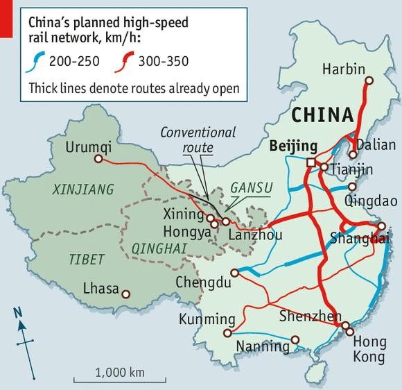 中国则是在1990年的全国人大上提出了修建北京至上海高铁的建议。那时候中国铁路运行以40多公里的时速为主。六次提速从1997年4月1日零时起,到2007年4月18日止才使中国铁路脱离了极为低速的时代,行驶速度达到120公里以上的有2.2万公里。这时中国还在高铁的门槛之外。