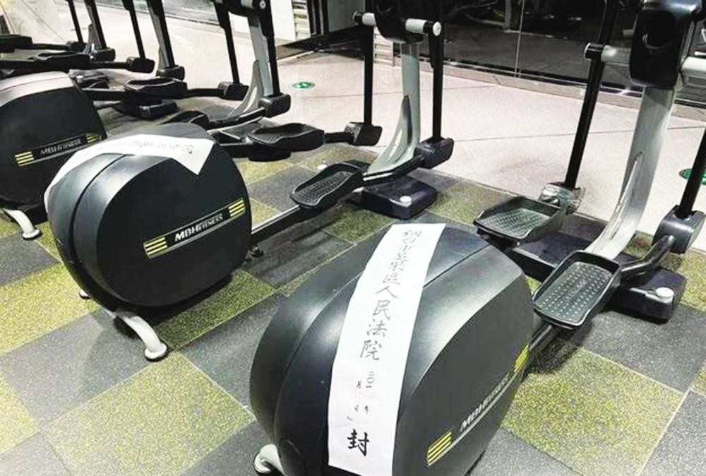 日前,记者在奥本健身看到,昔日热闹的健身会所,已经冷冷清清,过道里甚至可见烟头,部分健身器材也已被贴上查封封条。