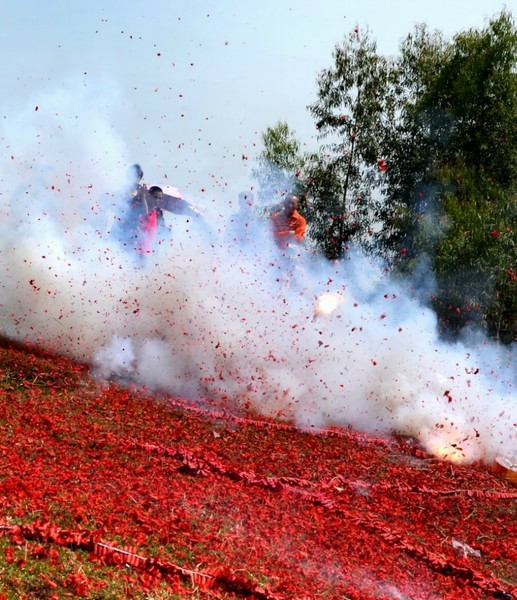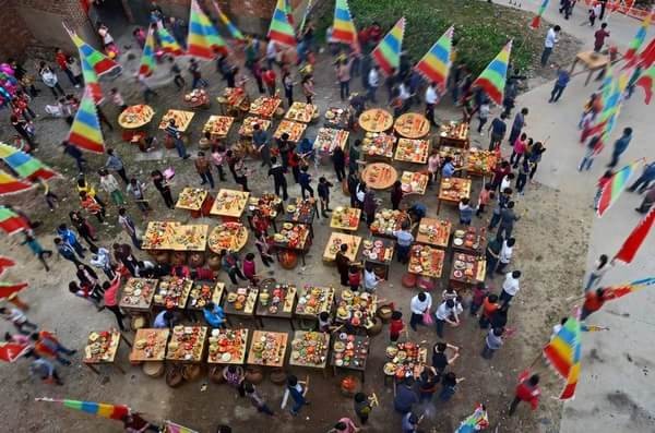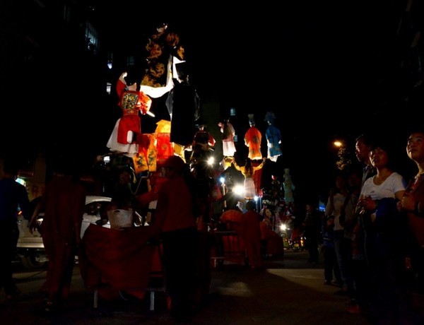 年例前夜,从庙中推着菩萨沿着所属区范围游行,叫游地界。
