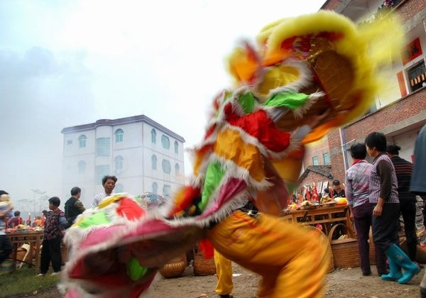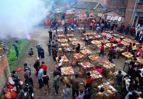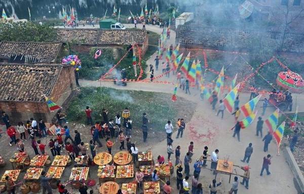 “年例”活动其中的“游神”就是把“神像”请出来,由健壮的青年人抬着菩萨,在大街小巷上巡行,形式类似北方的庙会(据传,其历史可以追溯至三百多年前的清朝),场面十分热闹。