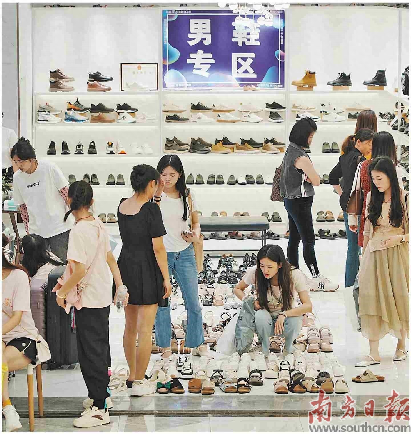 顾客在荔湾站前时尚商圈选购鞋子。 荔湾区站前街道供图