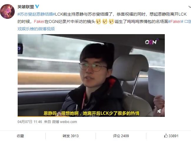 韩服又一个不眠之夜?恩静结婚,网友花式心疼Faker!