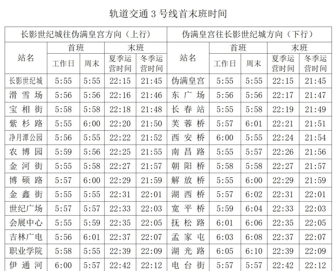 【提醒】收藏!长春轨道交通最新时刻表来了!