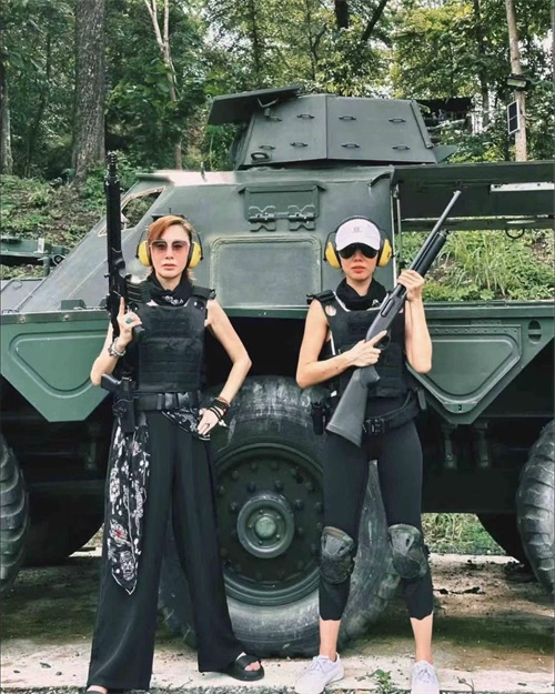 此外,还有网友曝光张敏和好友在泰国玩真人CS的照片。镜头里的张敏看起来非常英姿飒爽。