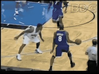 科比走底线过掉狼王加内特,面对中锋大风车扣篮得手