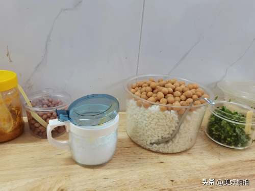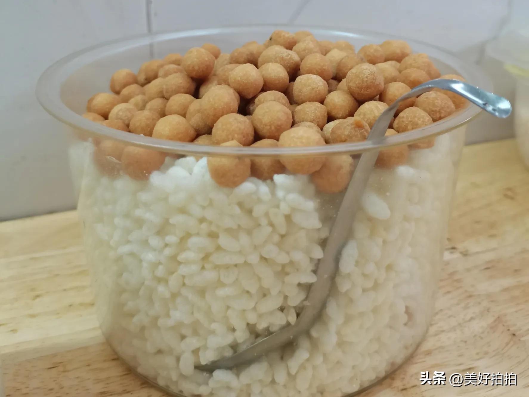 每张桌子上都摆放着炒米,麻旦果,葱花香菜 ,花生, 黄豆,红糖,盐 ,自己随便加 ,再买个艾叶糍粑,当早餐基本可以吃个饱。