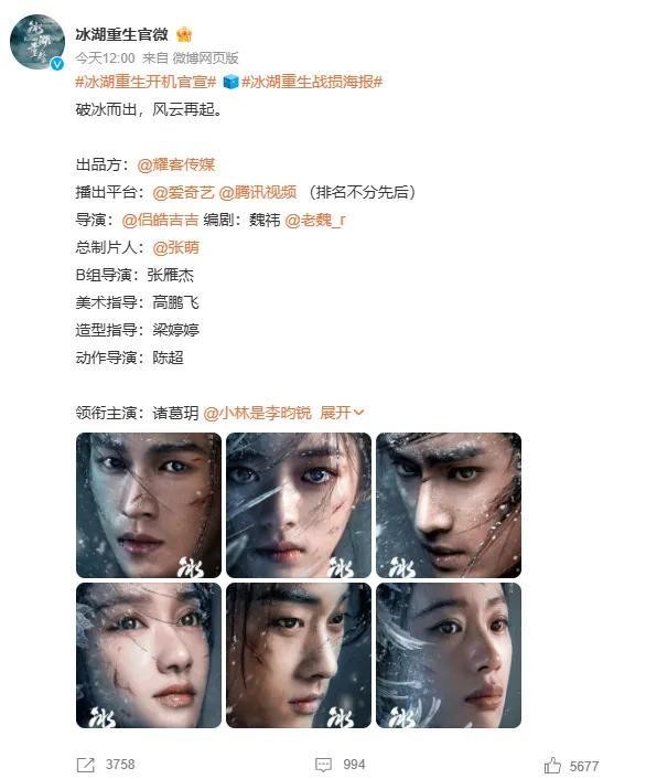 据悉,电视剧《冰湖重生》讲述了诸葛玥与楚乔一起跌入冰湖,楚乔获救后,寻机刺杀燕洵,为诸葛玥报仇。燕洵逃回燕北后一意孤行要攻打大夏,当初的屠龙少年终成恶龙。