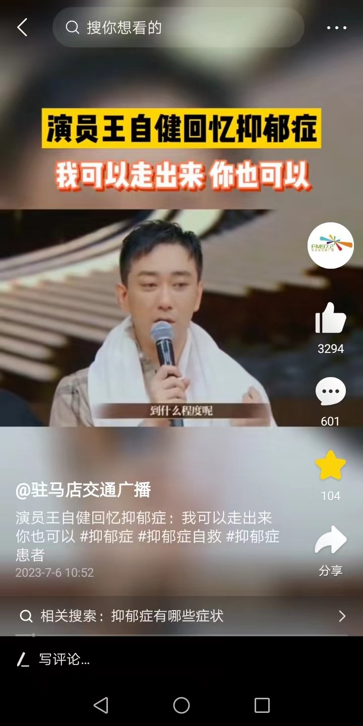 王自健说抑郁症是可以治好的,自己从一个每天删除一个好友,删完就死的深度患者,到现在不但能小跑,还能大跳,'“我已经完全走出来了”,希望如此。