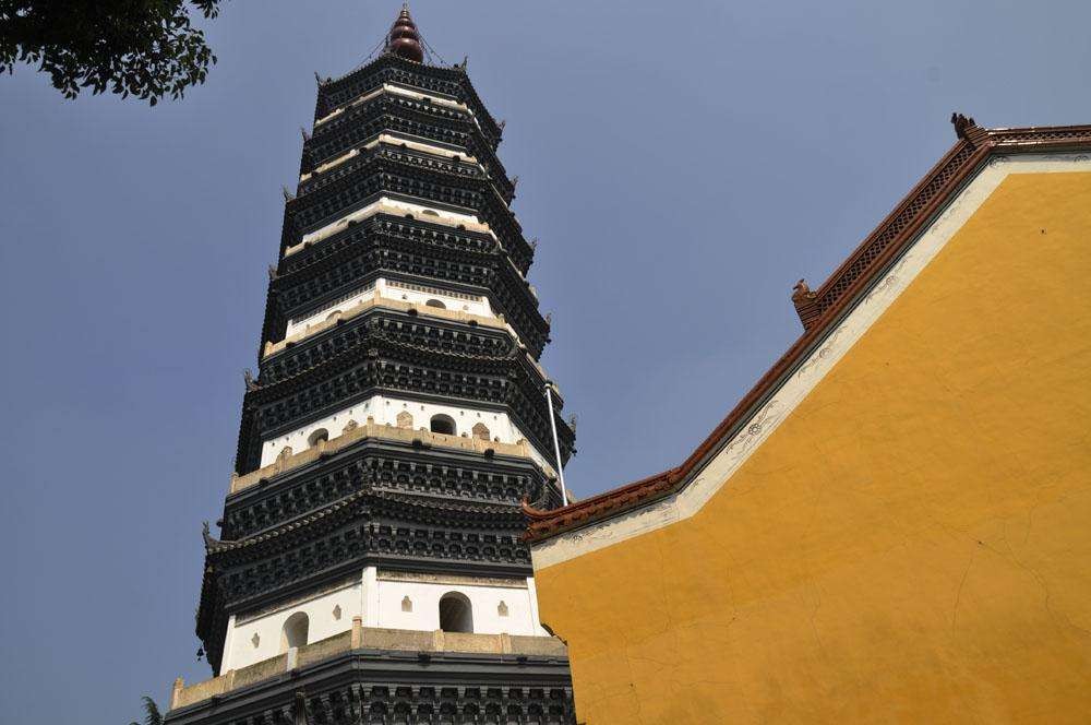 该寺由天王殿、大雄宝殿、振风塔、毗庐殿 、藏经楼、人士阁、法堂、广嗣殿等建筑组成。其中,振风塔始建于宋,重建于明隆庆四年(1570年),原名“万佛塔”,高达60.86米,是长江流域少见的迎江七级浮图。