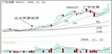 广宇发展这只股票在2009年11月12日的时候,趋势当日放量涨停,股价出水芙蓉形态,当天的换手是8.4%,紧接着股价强势崛起,后续继续大幅拉升。