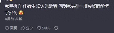 1、“家里拆迁 住宿生 没人告诉我 回到家站在一堆废面前愣了好久”