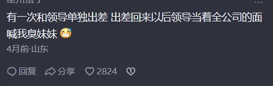 2、“有一次和领导单独出差, 出差回来以后领导当着全公司的面喊我臭妹妹”