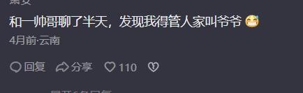 8、“和一帅哥聊了半天,发现我得管人家叫爷爷”
