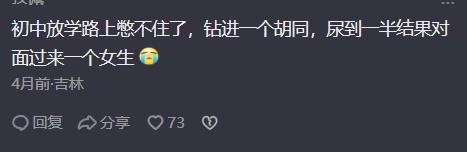 10、“初中放学路上憋不住了,钻进一个胡同,尿到一半结果对面过来一个女生”