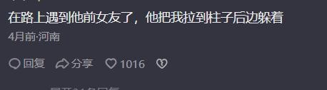 4、“在路上遇到他前女友了,他把我拉到柱子后边躲着”