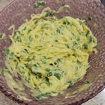 1、白萝卜擦成细丝加盐5克,腌制15分钟后挤干水份