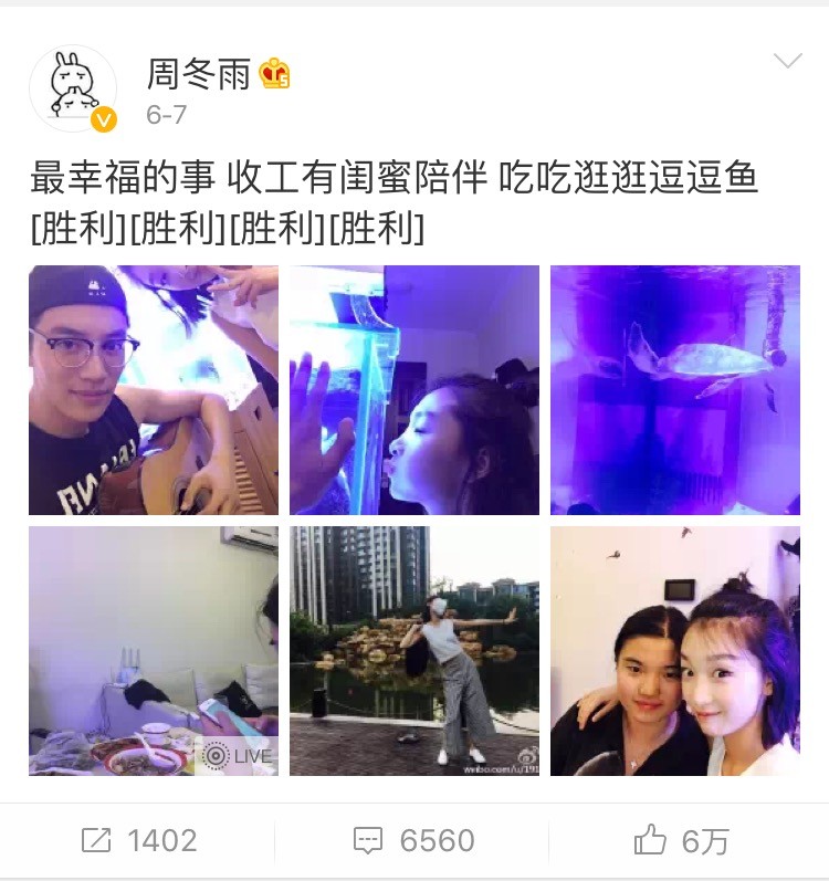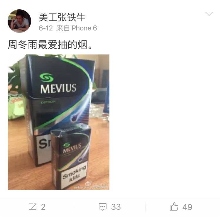 而周冬雨抽烟的证据来自她的微博。