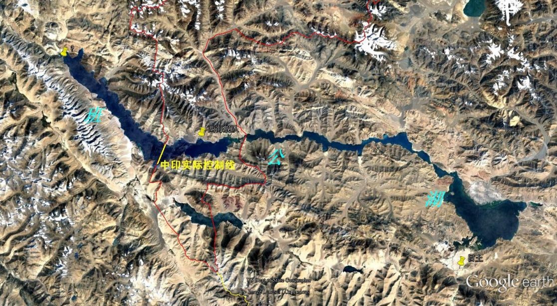 这是班公湖周边情况。图中阿克赛钦地区,是我国固有领土,目前为我方实际控制。