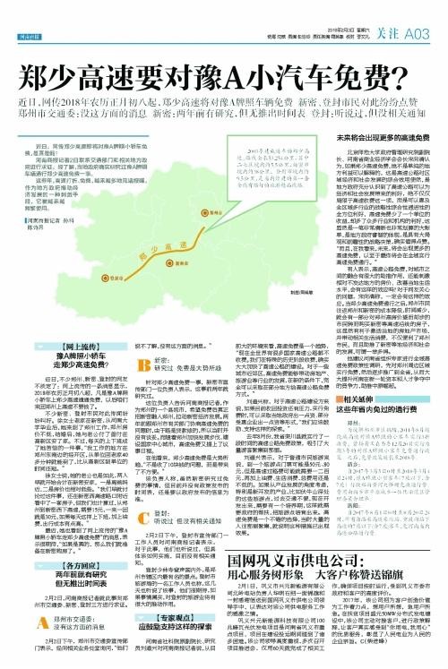 2月3日,《河南商报》独家报道了郑少高速或将对豫A小客车免费的消息,昨天该消息被证实。